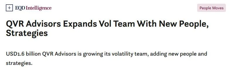 January 2026: EQD Intelligence - QVR Advisors hired Anna Lippel as an associate portfolio manager and Jimmy Li as a senior quantitative trader. The San Francisco-based hedge fund will add two further hires to help build out a crypto alpha strategy line.